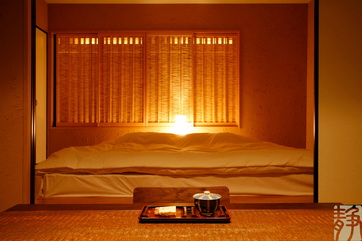 館外地下にある専用の露天風呂に6畳の和室、さらにツインのベッドルームをあつらえたお部屋『猩猩』にてご宿泊ください。旧東海道側(眺望なし)にお部屋があり、館外の地下部分にひっそりと『猩猩』専用露天風呂を用意してございます。箱根の爽やかな空気を専用露天風呂にて感じ、落ち着いた和の佇まいを有する客室にて、旅の寛ぎを。